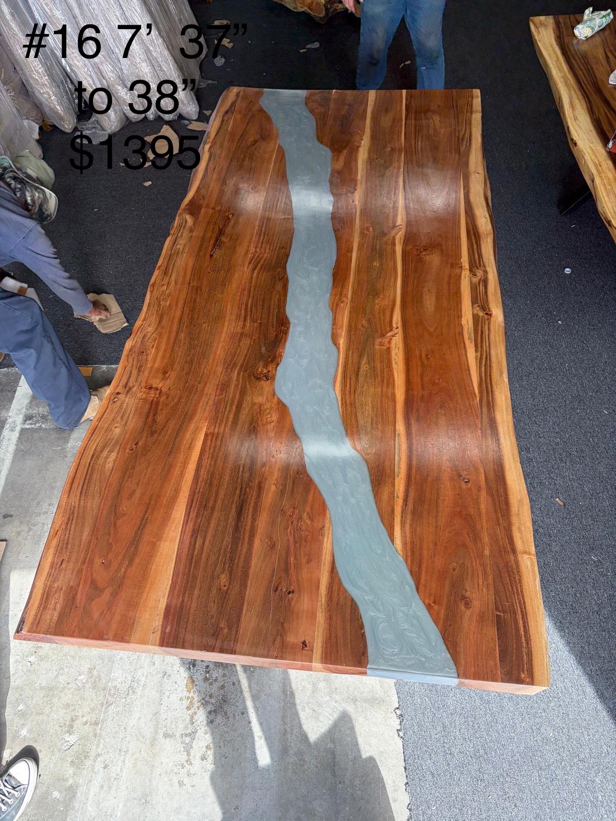 7ft acacia dining table with light grey epoxy 2″ thick