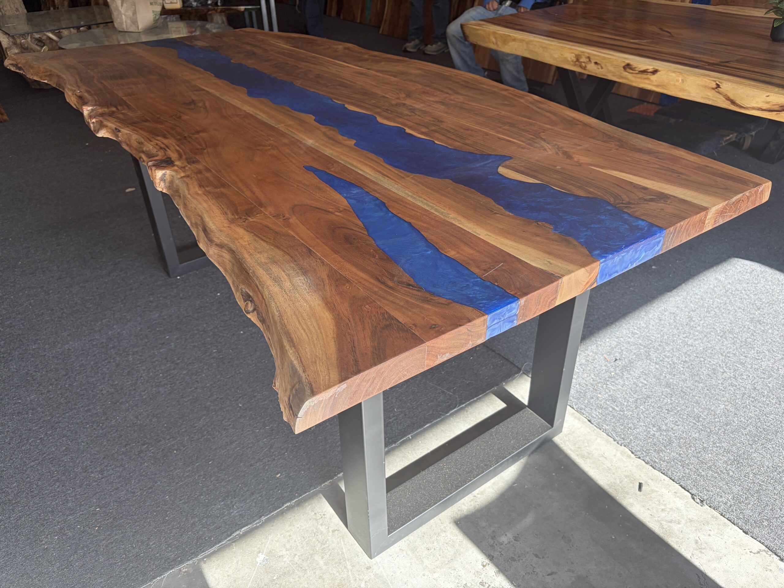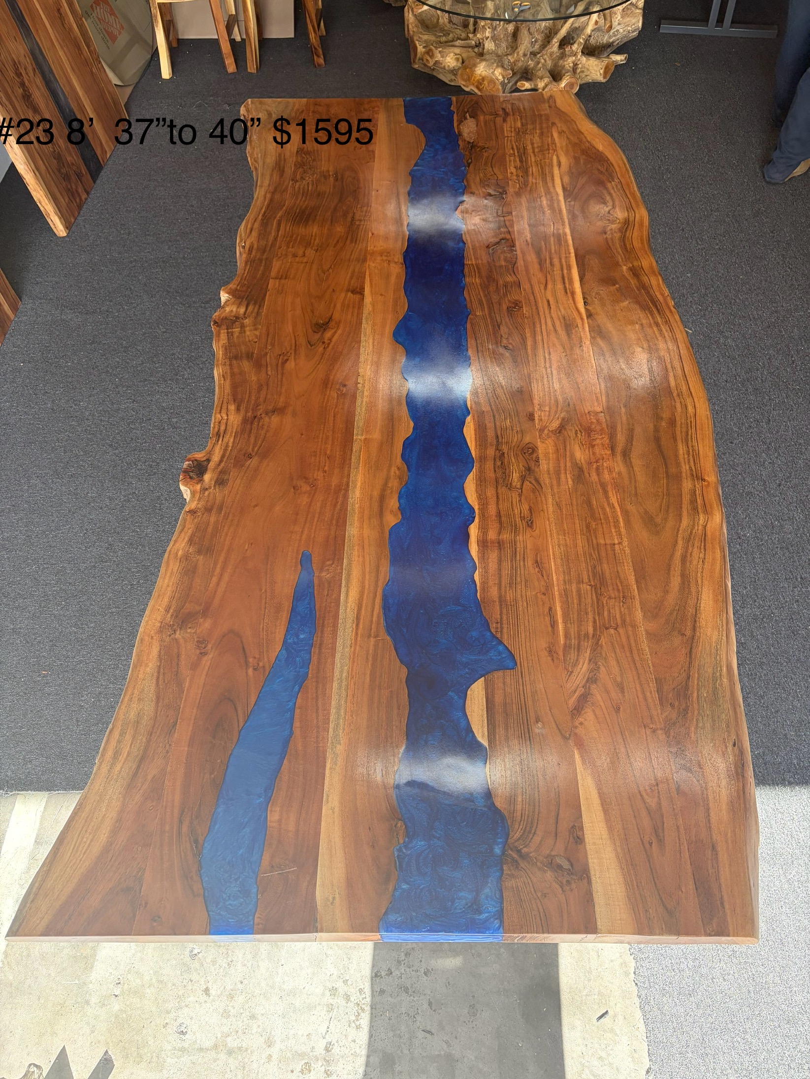 8ft acacia dining table with turquoise epoxy 2″ thick