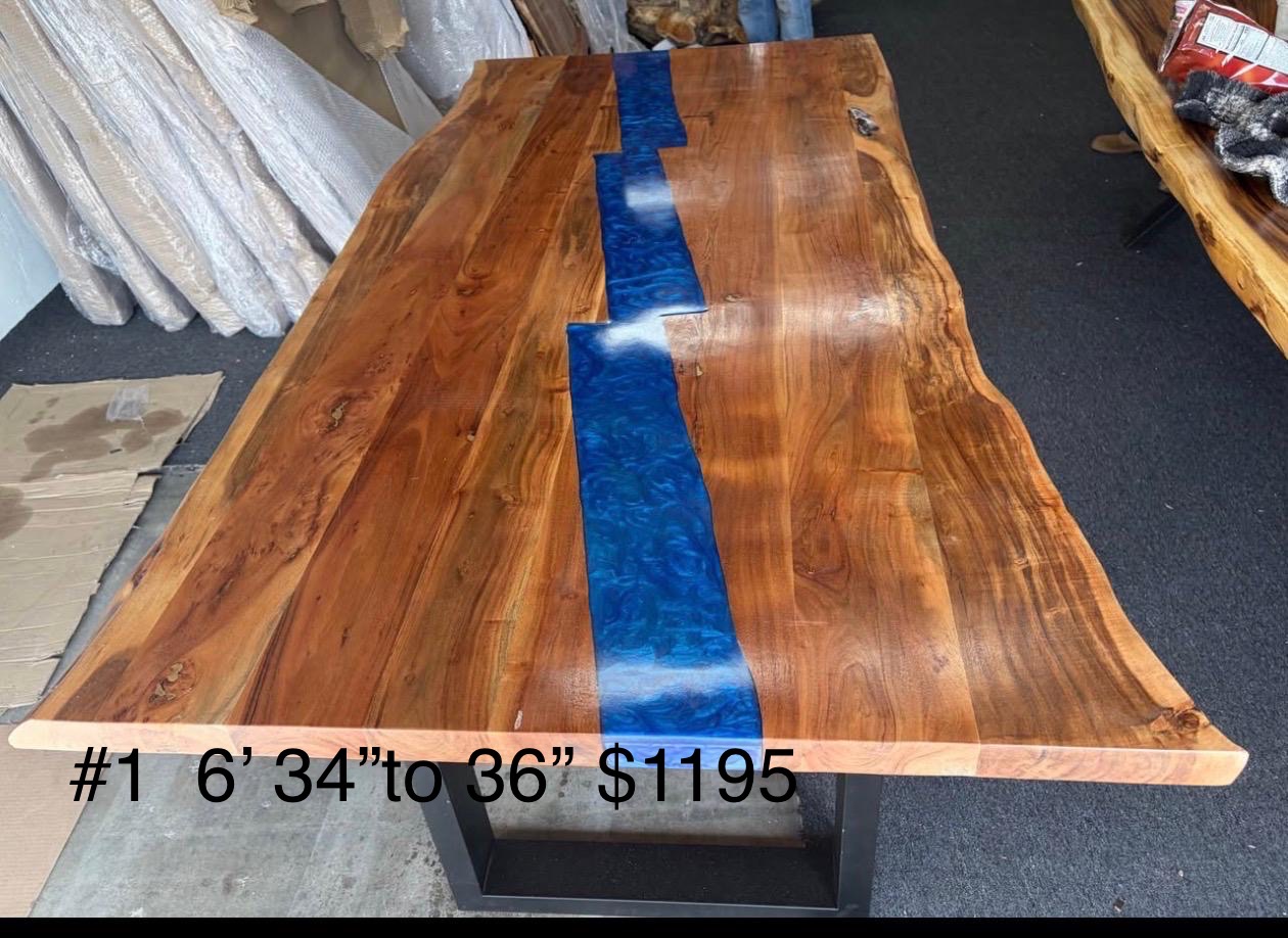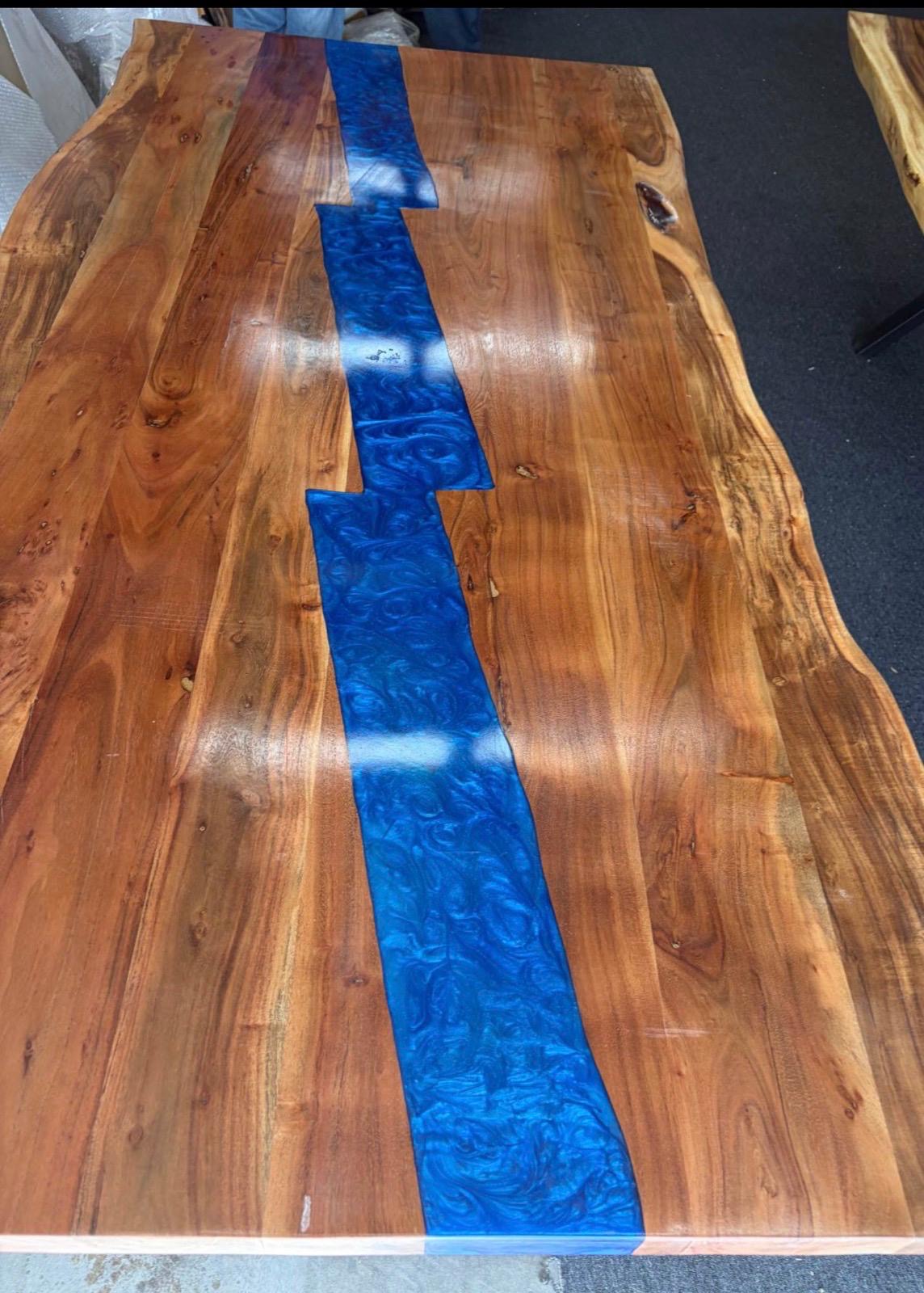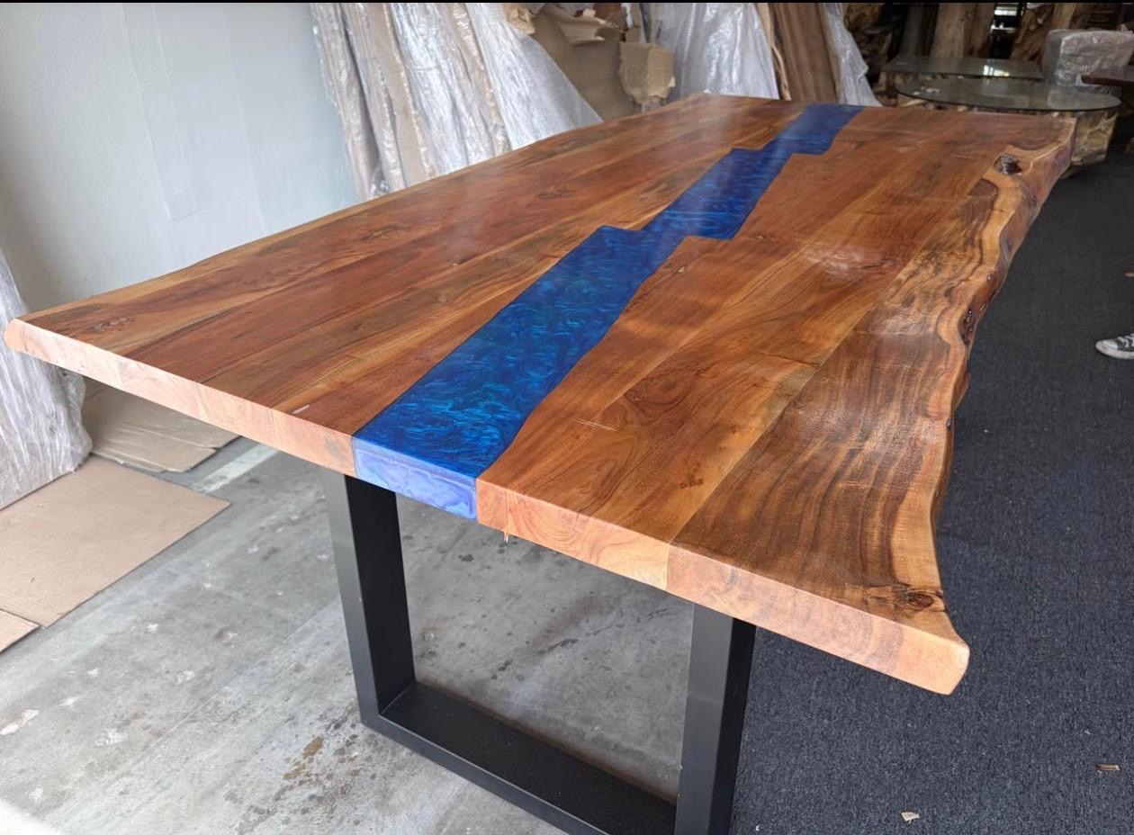 6ft acacia dining table with blue epoxy 2′ thick