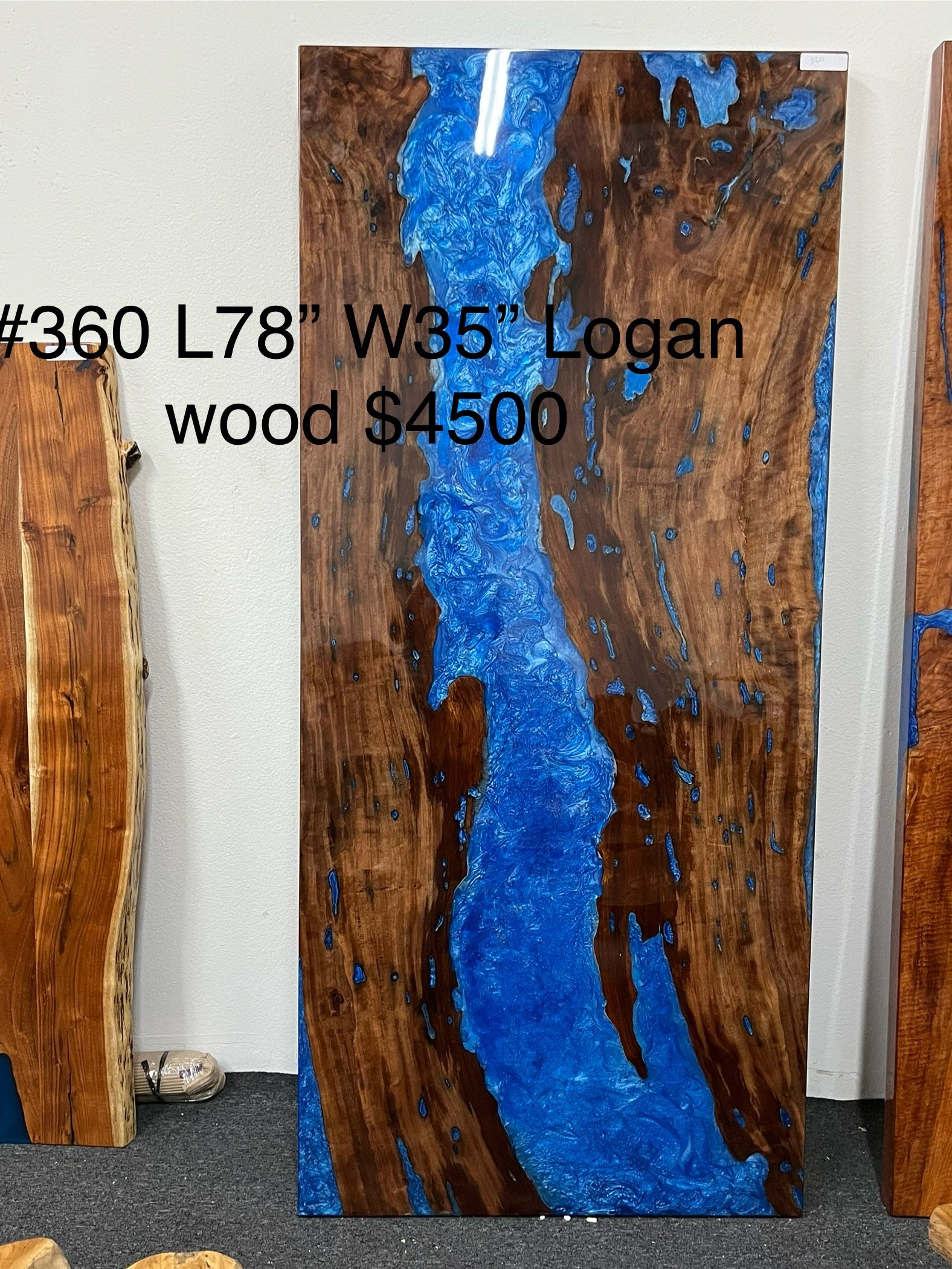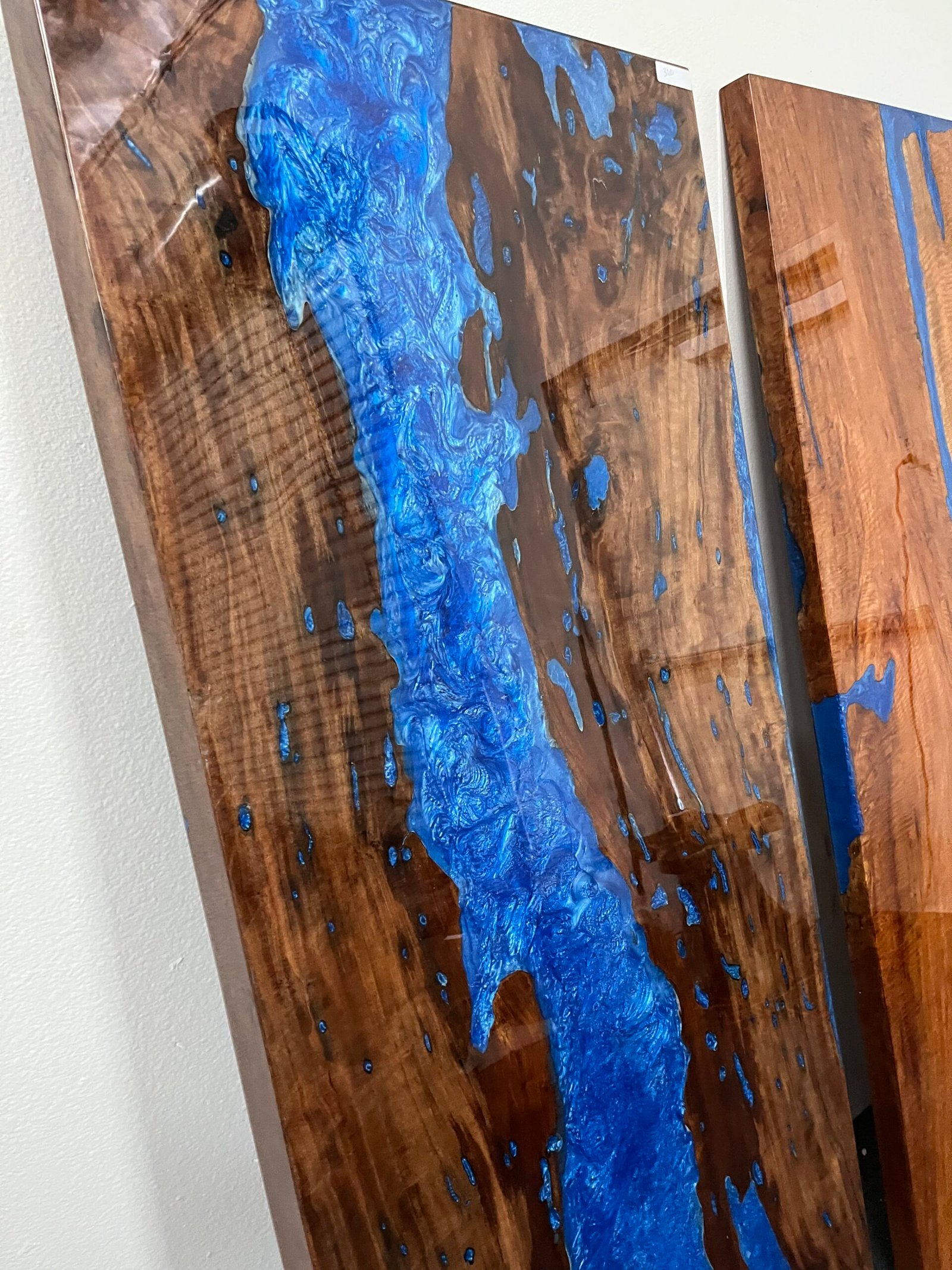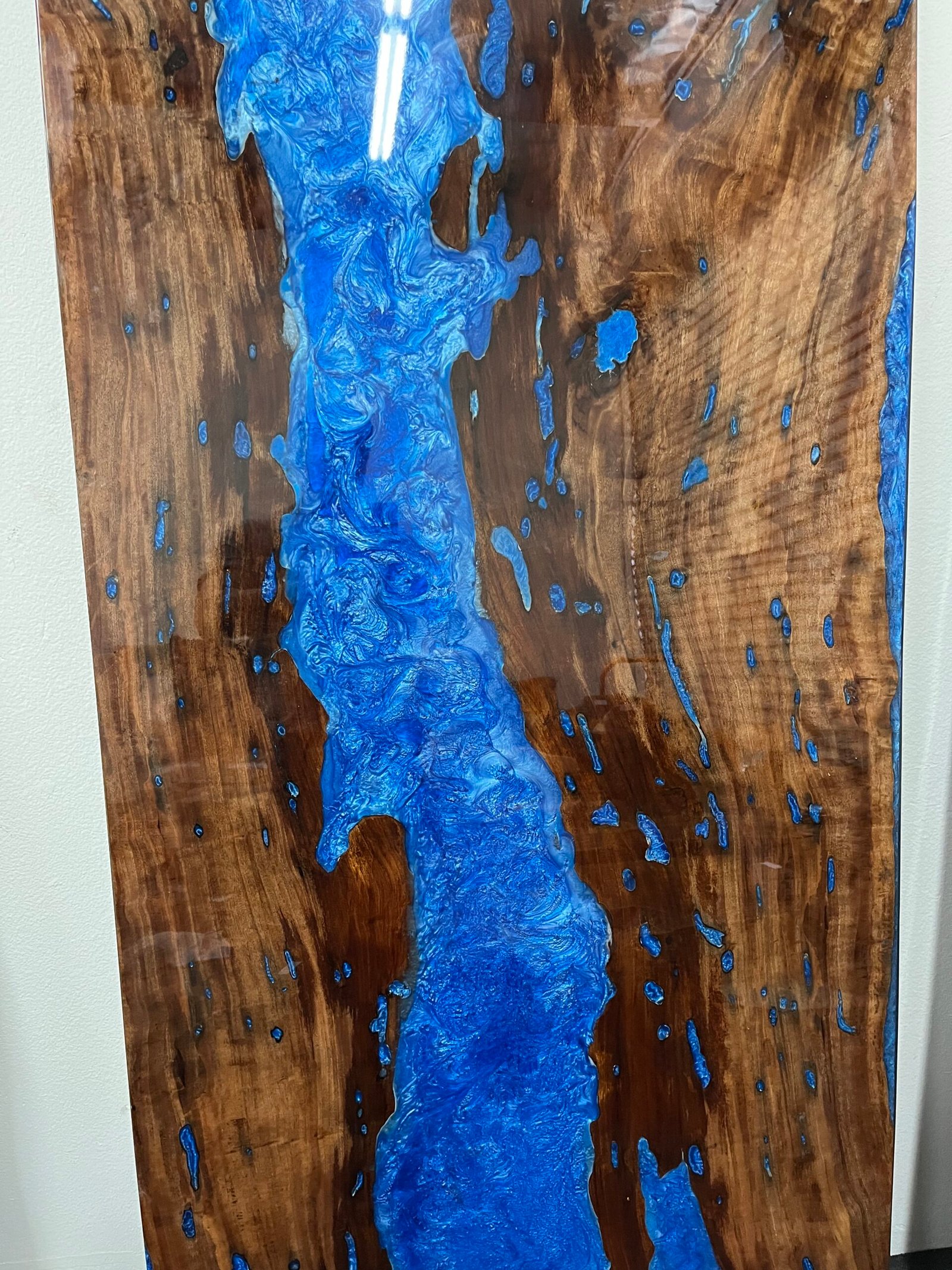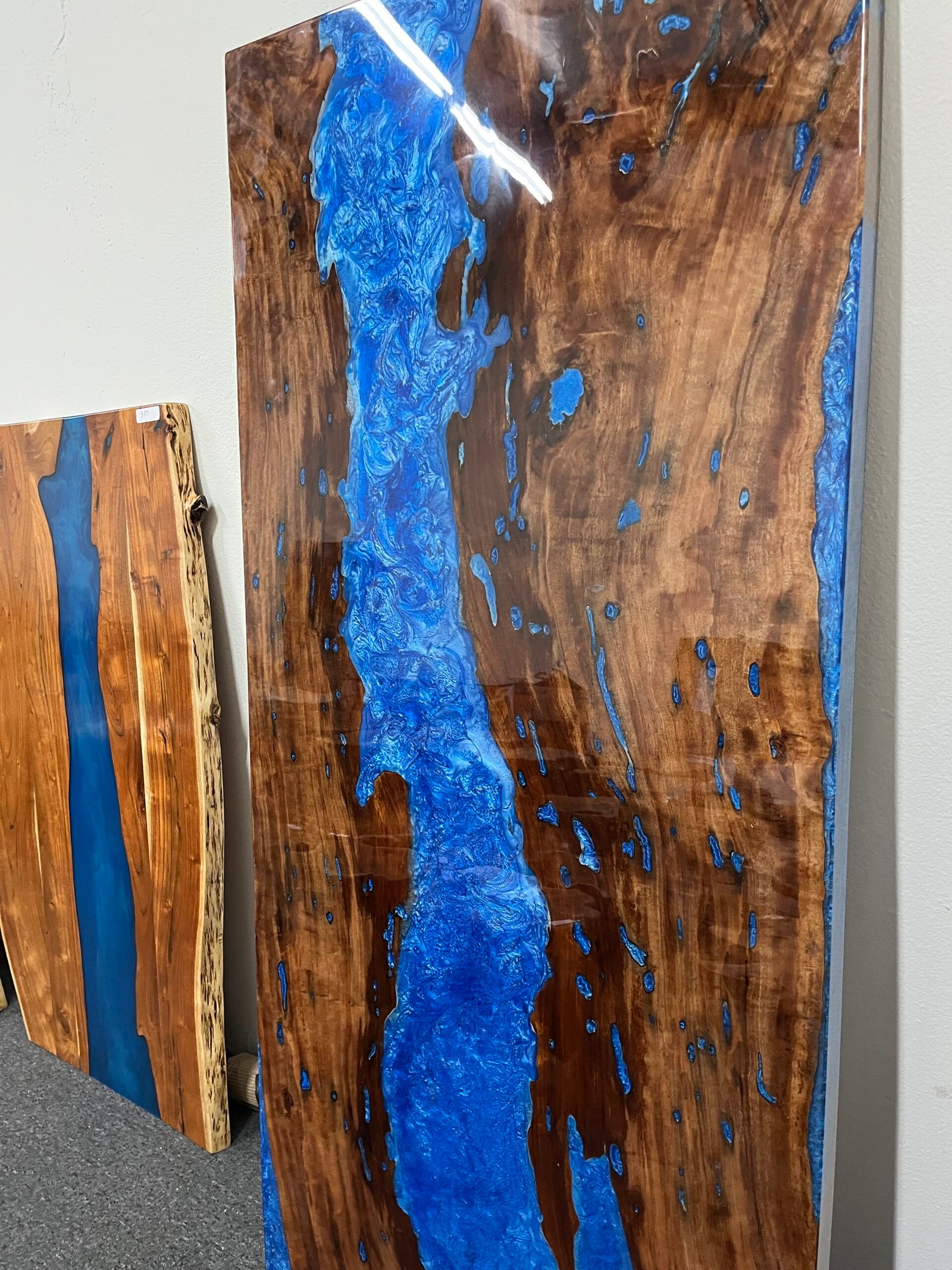 Logan Dining Table with Blue Epoxy and Flood Coat. Either side can be used.