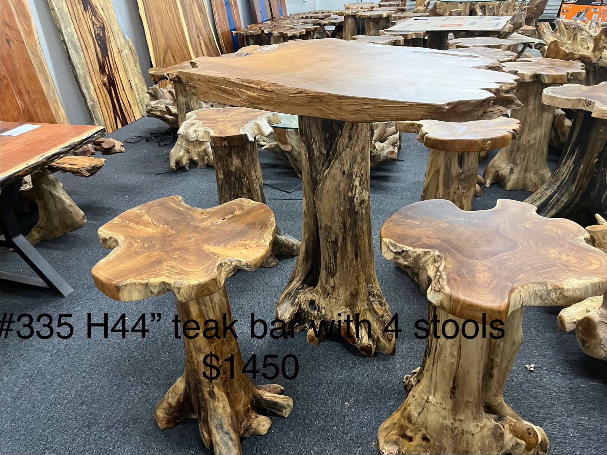 Bring natural elegance into your home or outdoor space with our handcrafted Teak Root Bars and Bar Stools, made from reclaimed teak tree roots. Each Teak Root Bar is a one-of-a-kind creation, showcasing organic shapes, rich wood grain, and warm golden-brown tones that make it a true statement piece. Perfect for coastal, rustic, or modern interiors, these bars combine raw natural beauty with lasting strength. Our matching Teak Root Bar Stools feature the same stunning craftsmanship and are designed for both comfort and durability — and each stool can be purchased separately or paired with a bar to complete your set. Built from solid teak wood, every piece is strong, water-resistant, and designed to last for decades. Explore our full collection — ready-made and available for same-day pickup at www.EpoxyTablesOnline.com.